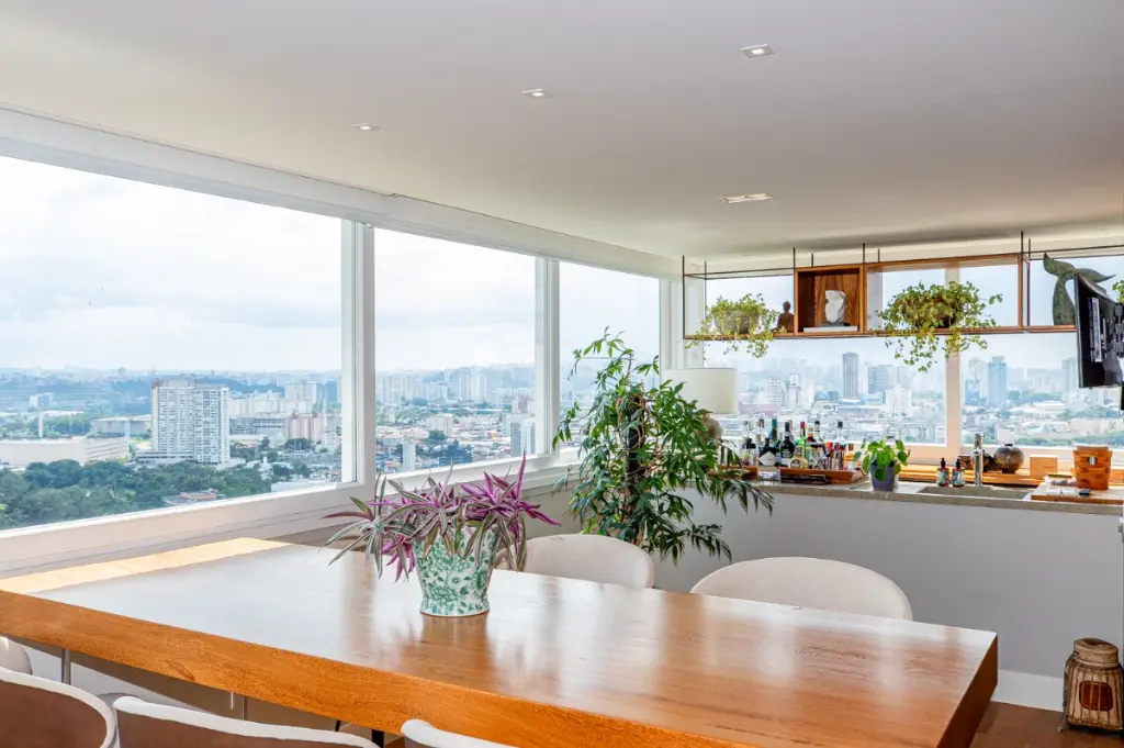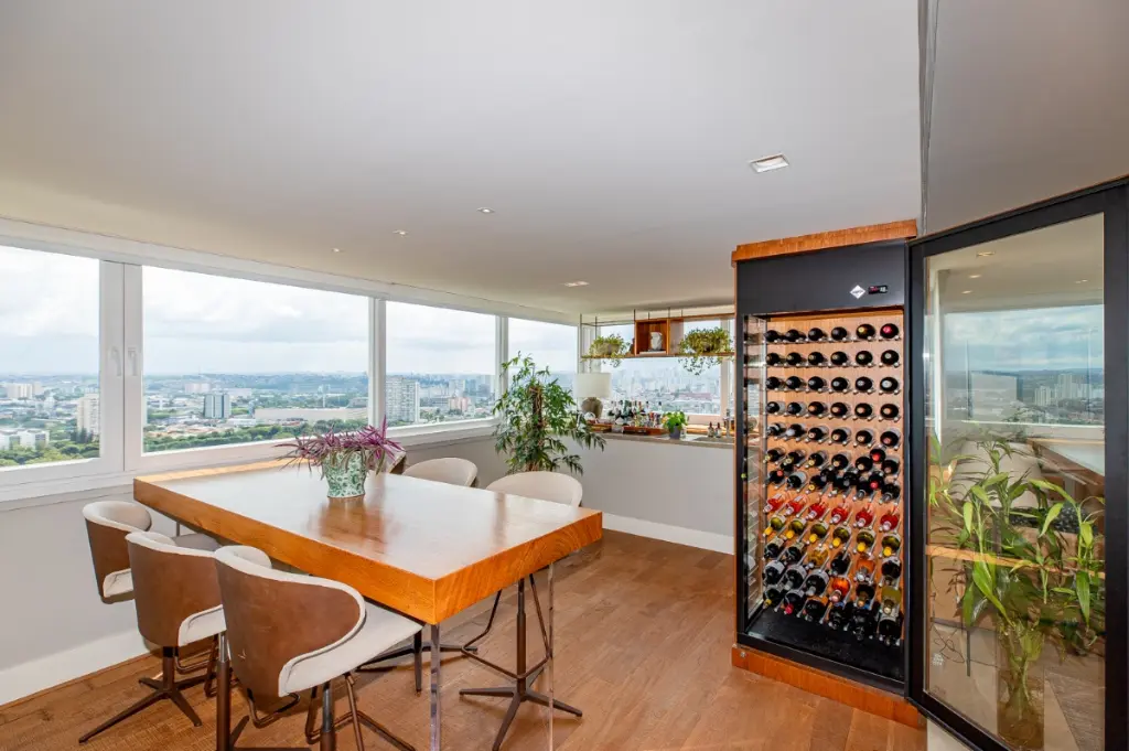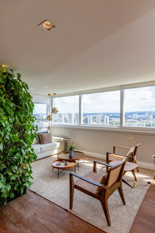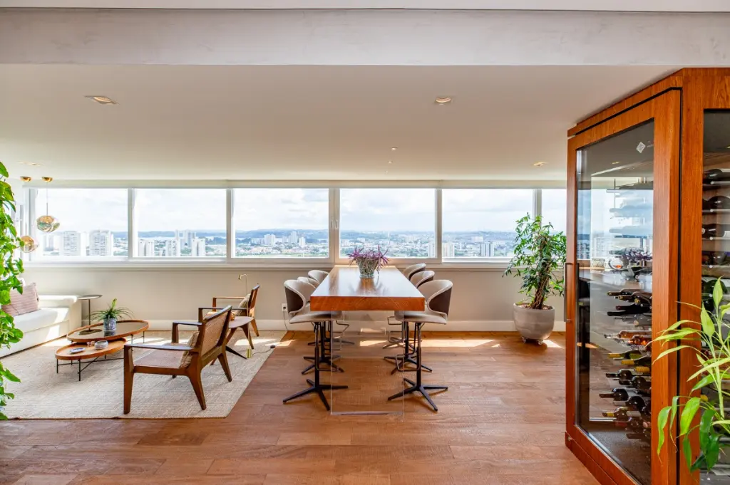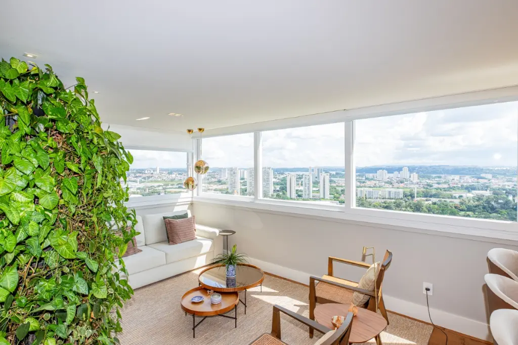 Varanda integrada e envidraçada, proporcionando uma conexão perfeita entre o interior e o exterior, além de oferecer vista panorâmica deslumbrante do Golf Clube.