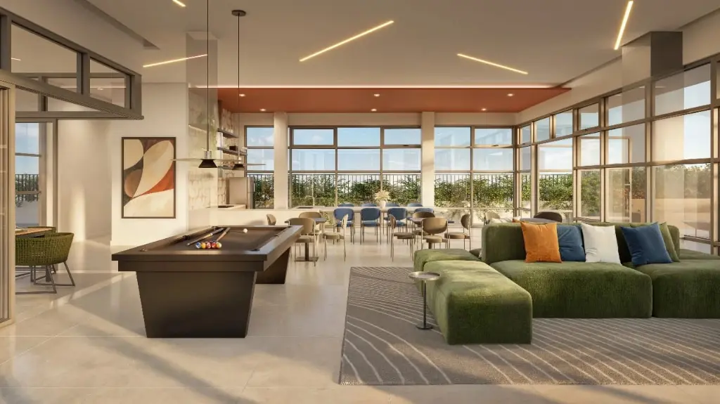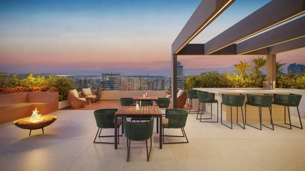 Lazer completo, incluindo brinquedoteca, área fitness, piscina com deck molhado e solario, bicicletário, lobby com concierge, coorking, pet place, mini market, lounge, quadra, salão de jogos, cinema externo, playground, lavanderia, salão de festas