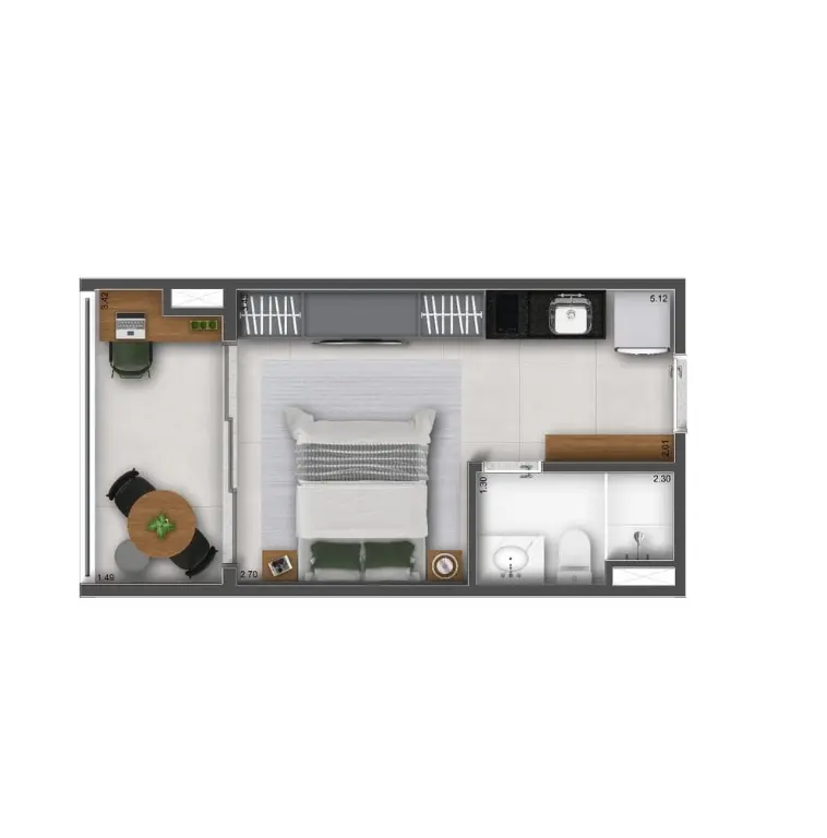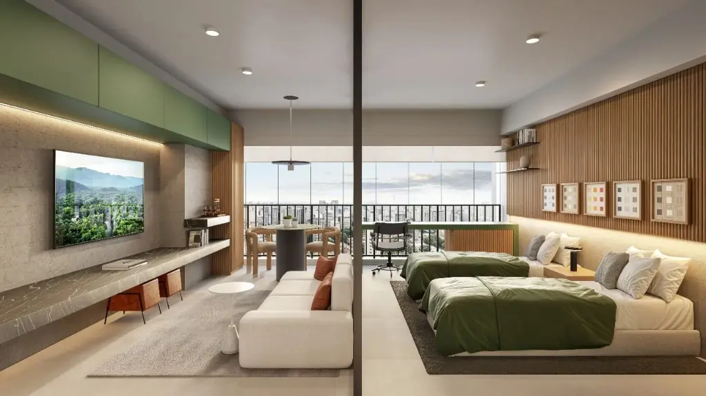 Suas plantas variam de 25m² a 40m² sendo studios, 1 e 2 dormitórios, com ambientes pensados para proporcionar máxima funcionalidade, se adaptando ao estilo de vida do morador.