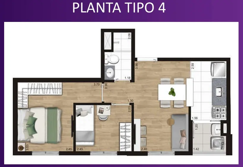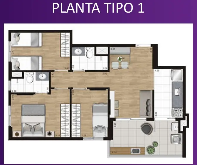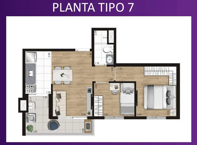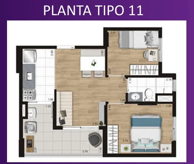 Apartamentos novos de 42,45m² com 2 dormitorios com varanda e 1 vaga de garagem .