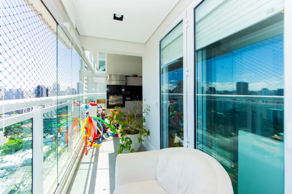 A varanda foi completamente integrada à sala, e nela está um dos maiores diferenciais deste apartamento: uma churrasqueira privativa - um privilégio raro no condomínio, presente apenas em poucas unidades.