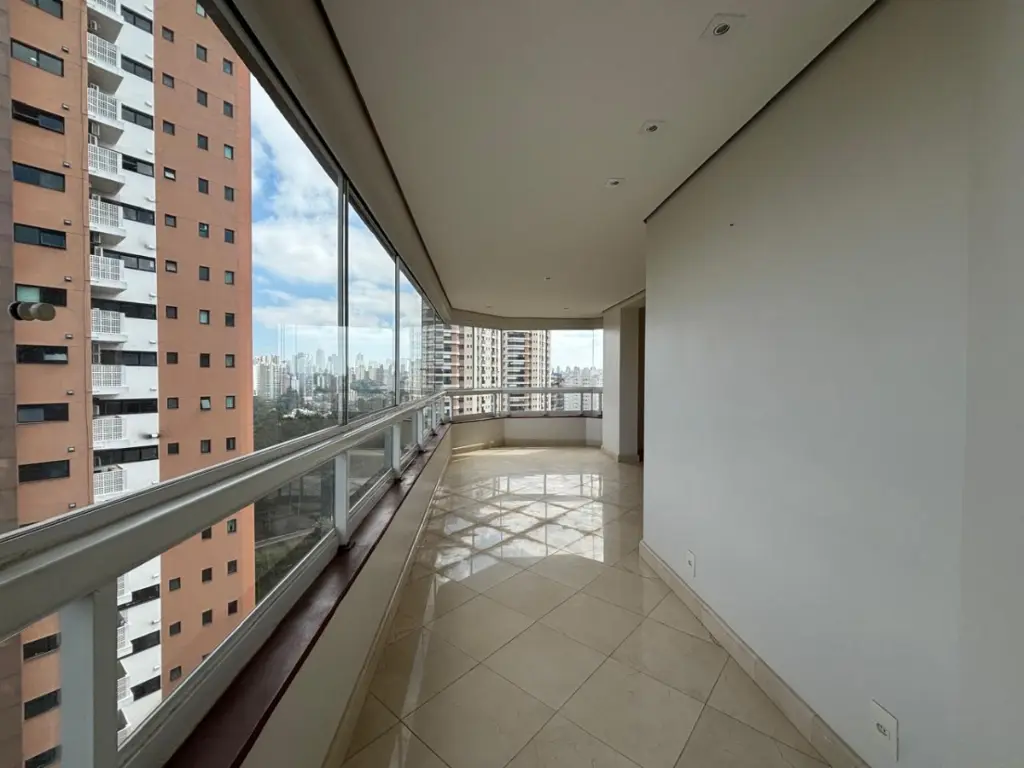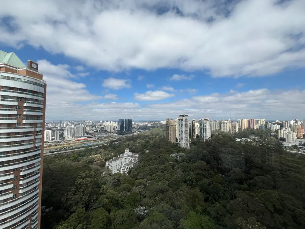 Varanda espaçosa com vista panorâmica para o Palácio Tangará