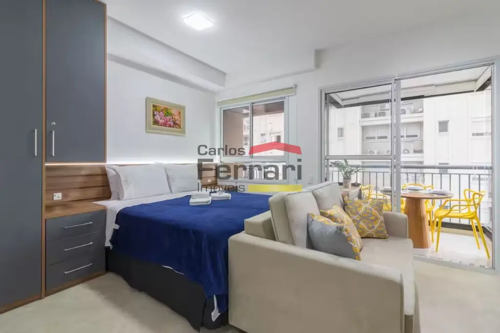 Charmoso studio de 28m², perfeito para quem busca praticidade em uma das melhores regiões de SP. Unidade bem planejada, com varanda, armários e banheiro adaptado.