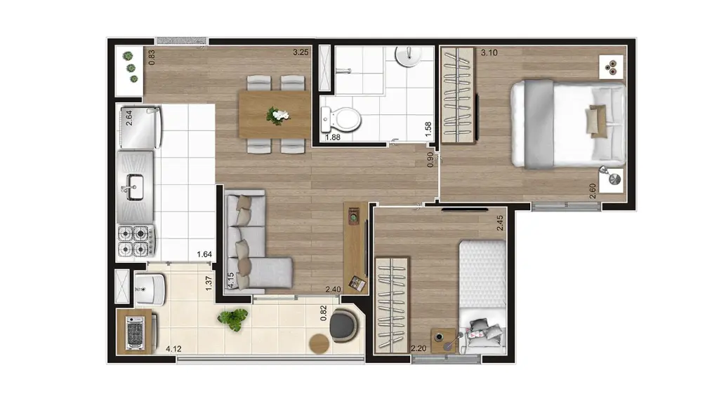 Seu novo apartamento de ⇉ 2 dormitórios, com opções de 41m² e 43m² ⇇ foi pensado para seu conforto e praticidade. Desfrute de uma Varanda Gourmet para seus momentos de lazer e conte com vaga na garagem, um item essencial para sua comodidade.