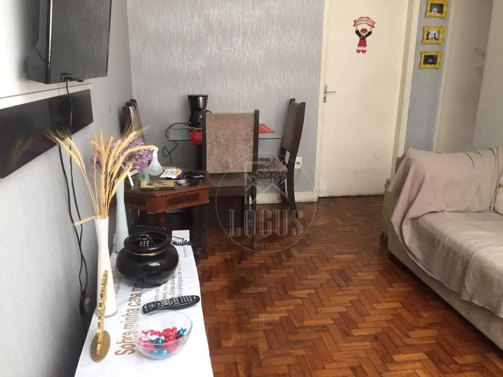 Apartamento de 58 m² com 2 dormitórios, sala 2 ambientes, cozinha, área de serviço, 1 banheiro e 1 vaga de garagem coberta fixa.