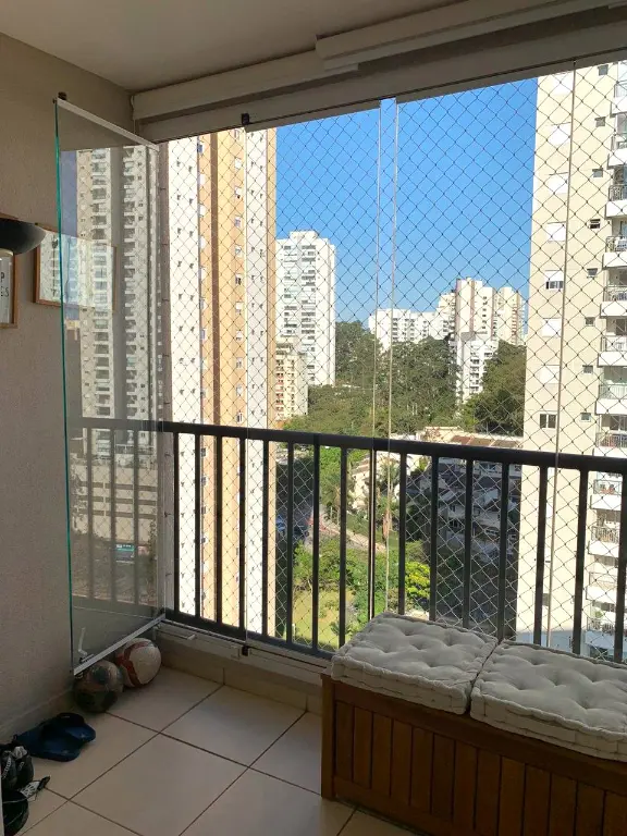 Lindo apartamento, em andar alto, na Vila Andrade. Aconchegante sala ampla, com cozinha americana repleta de lindos armários, sacada fechada com vidro, maravilhosa vista.