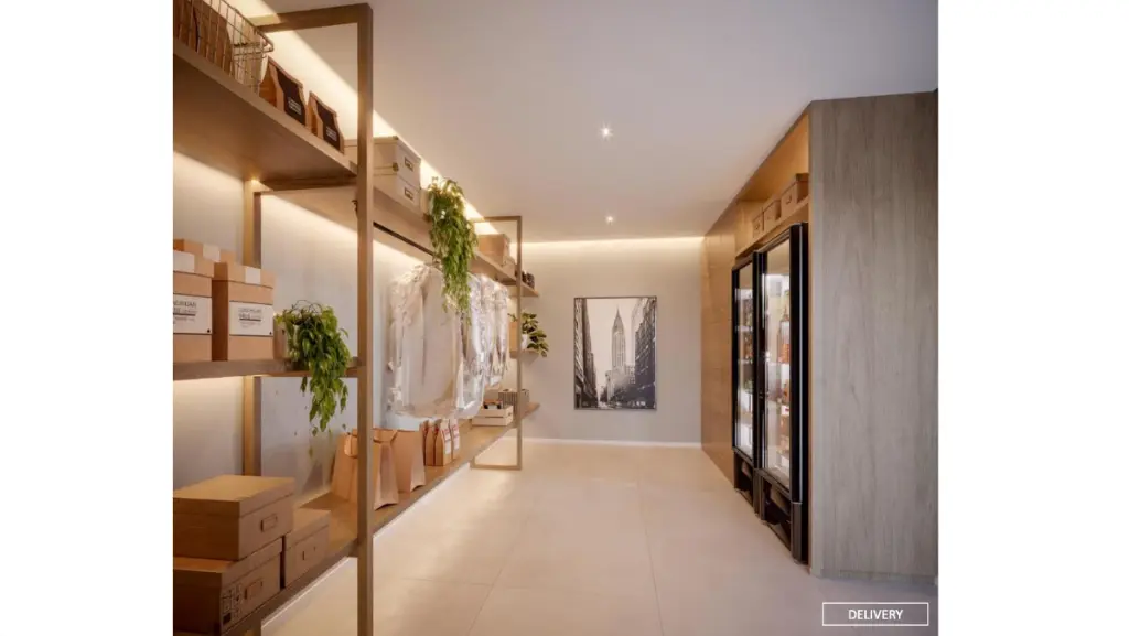 Conveniência Total: Coworking sofisticado para reuniões, lavanderia coletiva, espaço delivery e mini market.