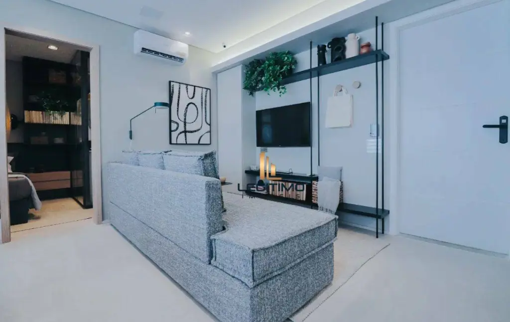 Studio de 1 dormitório projetado para máxima otimização de espaço, infraestrutura completa para ar-condicionado, entrada de luz natural, proporcionando ambientes claros e maior sensação de amplitude.