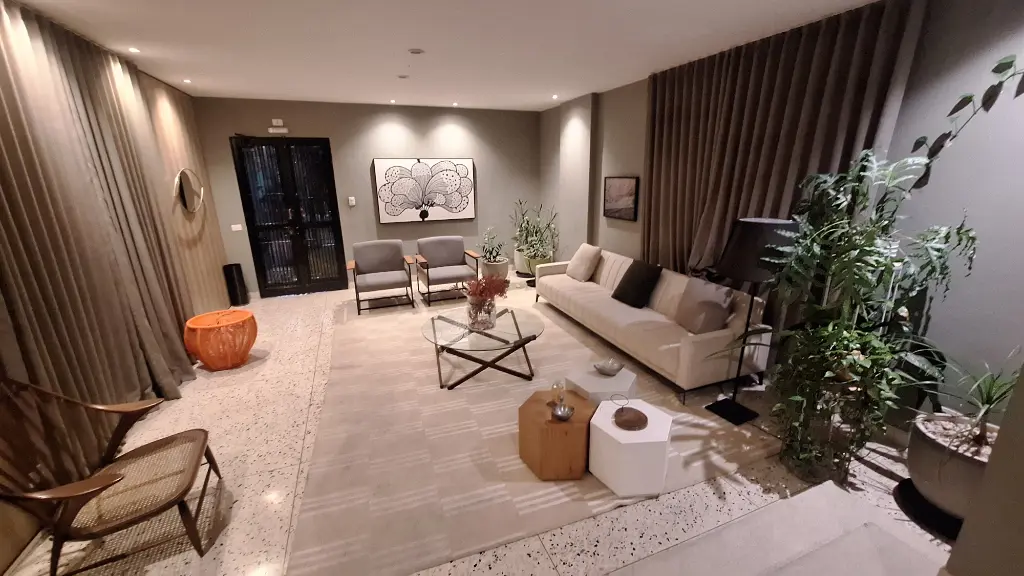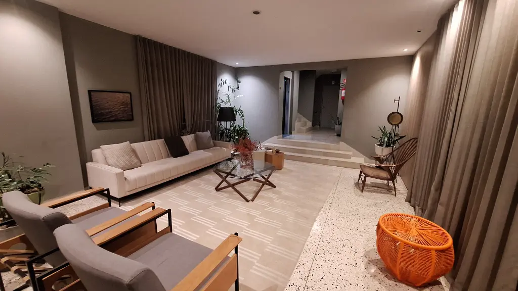 Com 2 quartos, sala 2 ambientes, cozinha, área de serviço e banheiro, área útil de 77 m². Apenas 2 apartamentos por andar.