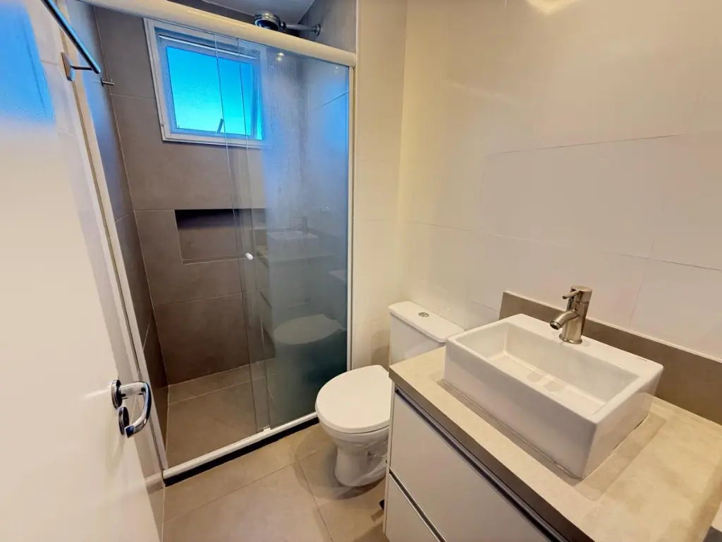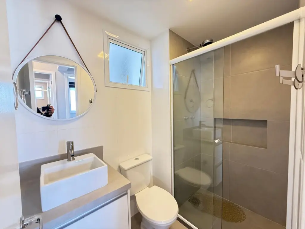 O apartamento conta com 3 dormitórios, sendo 1 suíte, todos com móveis planejados, perfeito para quem busca bem-estar e funcionalidade. Sala ampla, integrada a uma charmosa varanda grill envidraçada, ideal para relaxar ou receber amigos. A decoração moderna e a iluminação embutida valorizam ainda mais cada ambiente, proporcionando aconchego e elegância em todos os detalhes.