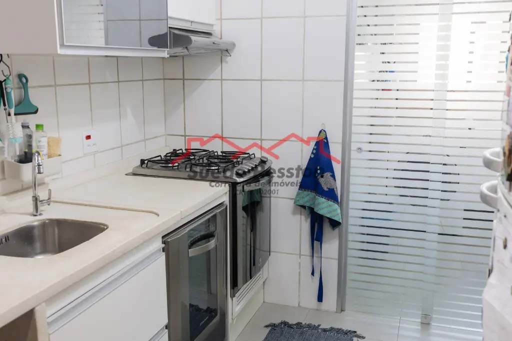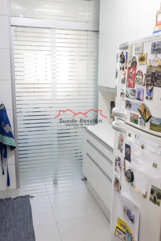 - Porta de vidro jateado entre a cozinha e a área de serviço;