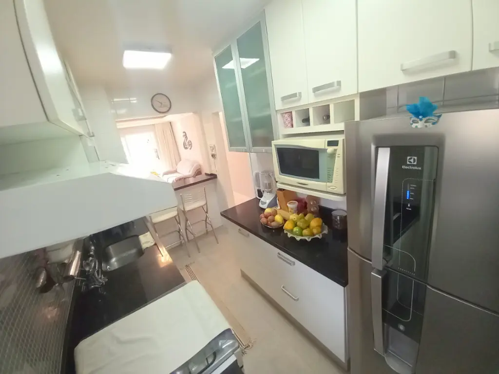São três dormitórios, incluindo uma suíte aconchegante, além de uma sala ampla para dois, varanda gourmet com churrasqueira, ambientes que convida ao convívio e à celebração. A cozinha estilo americana, com armários planejados, integra praticidade e charme, enquanto a área de serviço e o banheiro de funcionário trazem funcionalidade ao dia a dia. Com aquecedor a gás e duas vagas de garagem, cada detalhe foi feito para o seu conforto.