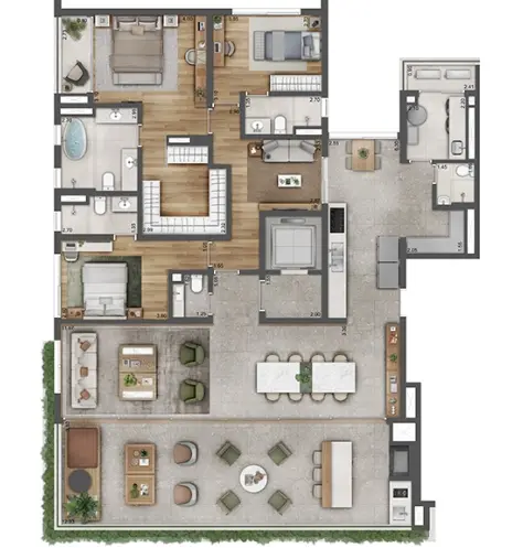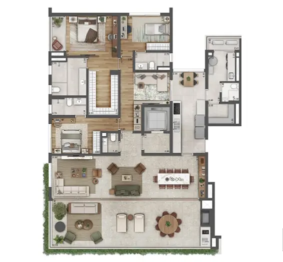 Terreno de 5043 m² 2 Torres 76 residências Quadra de tênis Academia funcional com terraço Piscina descoberta Piscina coberta com raia de 25m Lounge Spa Salão de festas Espaço gourmet Pet place Sauna seca Sauna úmida Brinquedoteca Terraço coberto Quadra de jogos Sala de massagem Playground