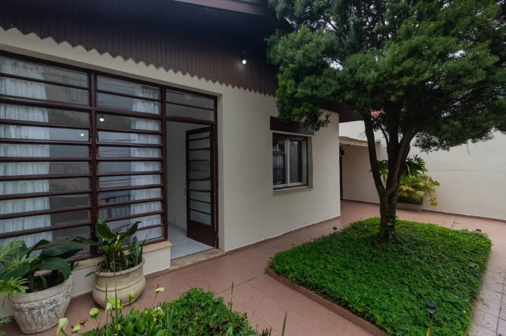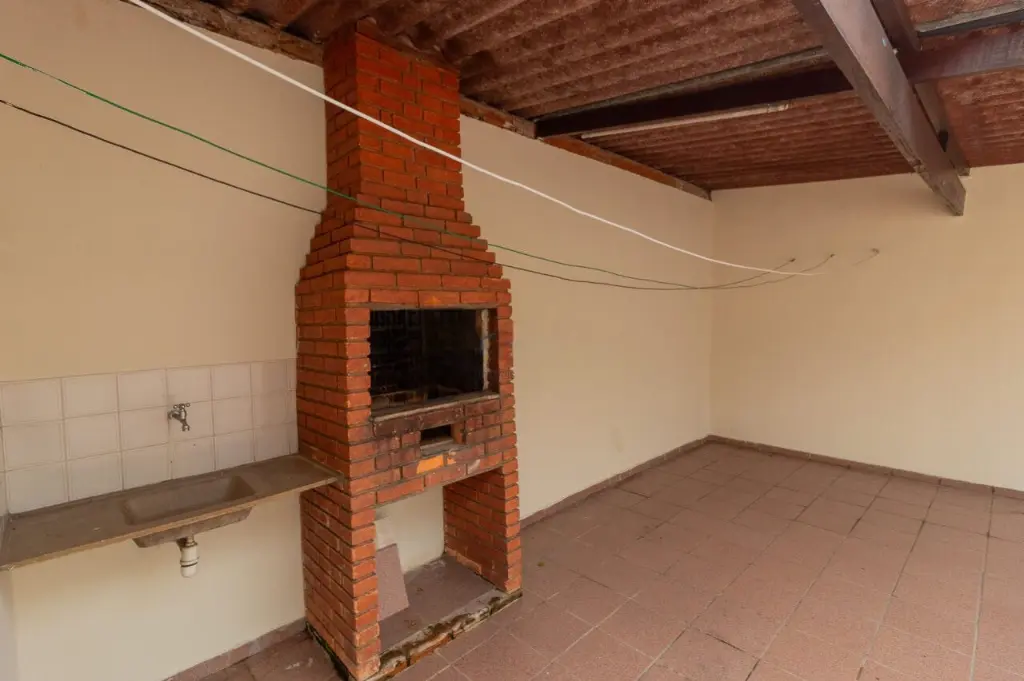 Casa térrea com 4 vagas de garagem e 164M² distribuídos em 3 dormitórios, sendo 1 suíte com armário, sala de estar, cozinha com armário, 1 banheiro social, dependências de empregados, quintal com churrasqueira, e área de serviço.