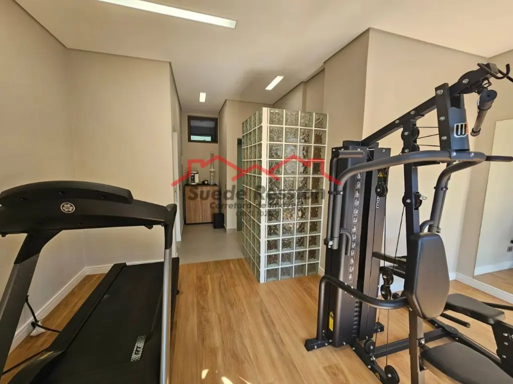 Escada larga em alvenaria, jardineiras e armários embutidos e ar-condicionado nos 3 dormitórios. Suíte master com varanda, três armários embutidos, banheiro com jardineira e amplo box.