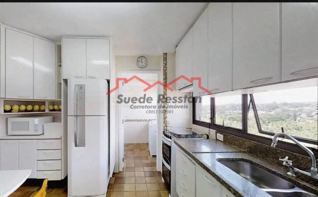 Cozinha com vista para o Clube Banespa, ampla pia, Cook top, coifa, armários novos e balcão.
