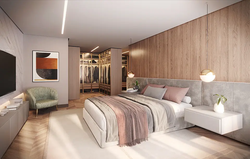 Acabamentos premium: Materiais nobres e design sofisticado em todos os cômodos.