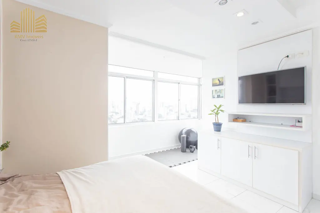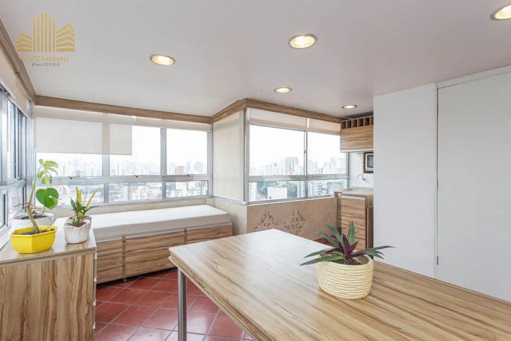 Cobertura duplex modernizada, com vista deslumbrante para a região arborizada que se encontra no entorno.