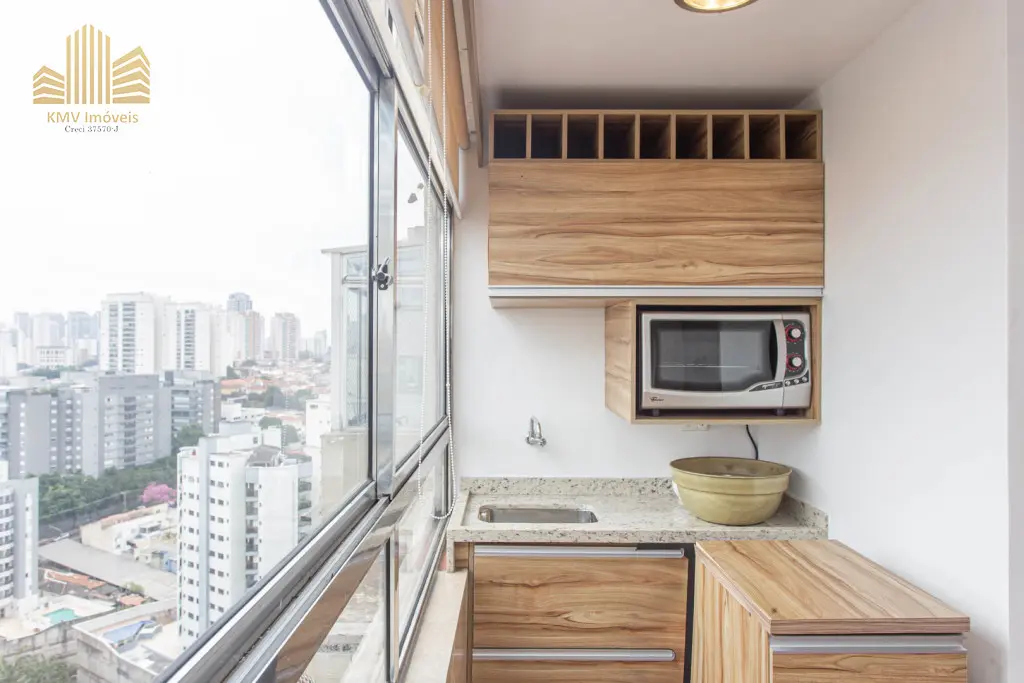 O espaço interno foi projetado para aproveitar ao máximo cada ambiente, com móveis planejados, piso porcelanato, home theater e uma charmosa sacada para relaxar e apreciar a paisagem urbana.