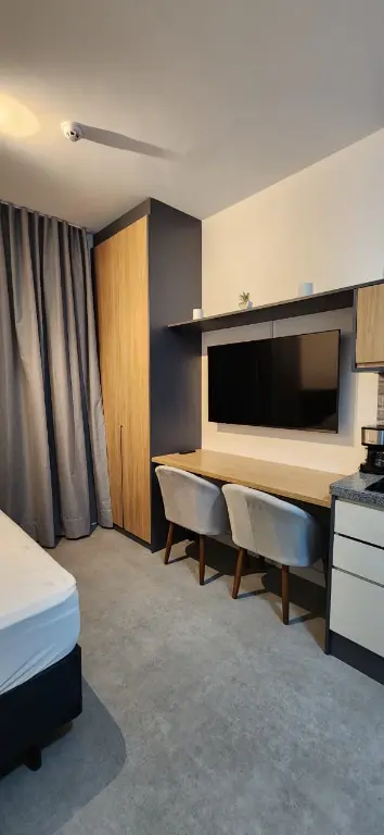 Este moderno Studio oferece um ambiente acolhedor com suas acabamentos de primeira linha e um layout inteligente, perfeito para quem busca praticidade sem abrir mão de estilo. Com 23 metros quadrados de área útil, a propriedade destaca-se por ser parte de um novo desenvolvimento com um preço imperdível!. O Studio comtempla, piso, iluminação, marcenaria completa, box e ar condicionado.