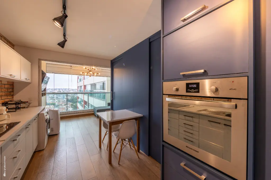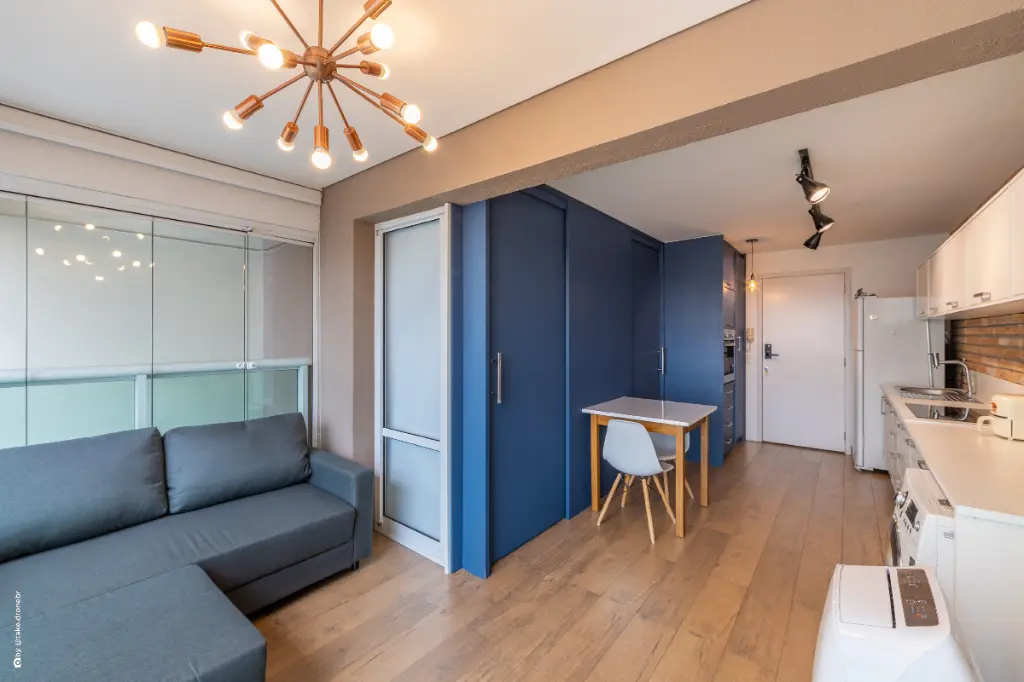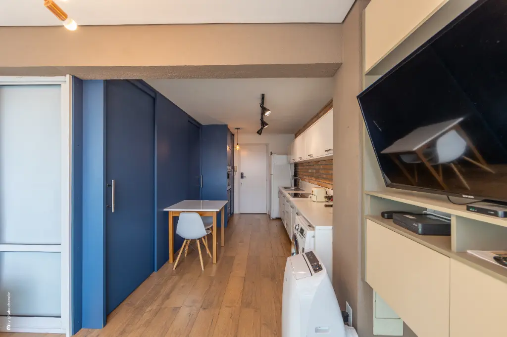 Este studio de 34 m² foi projetado para quem busca funcionalidade sem abrir mão de estilo e aconchego. O ambiente é totalmente mobiliado, conta com móveis planejados de excelente qualidade e apresenta um layout inteligente, que otimiza cada espaço e torna o dia a dia muito mais prático.