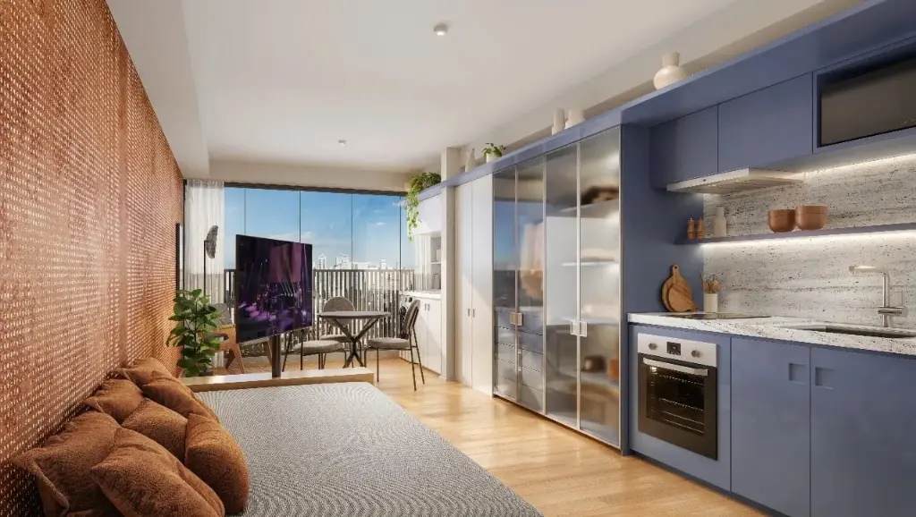 O empreendimento conta com studios e 1 dormitório de 26m² a 37m², com plantas inteligentes e que contemplam funcionalidade a cada metro quadrado.