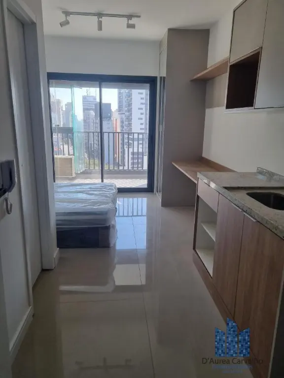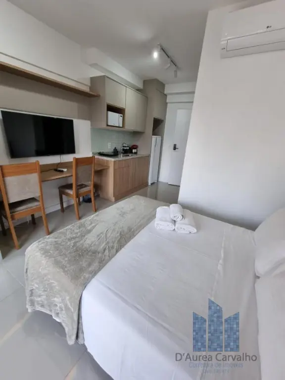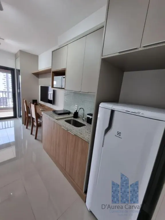 Studio localizado no décimo terceiro andar com boa ventilação e luminosidade. Possui: amplo espaço integrado a cozinha, varanda e banheiro social. Vaga de garagem para 1 veículo.