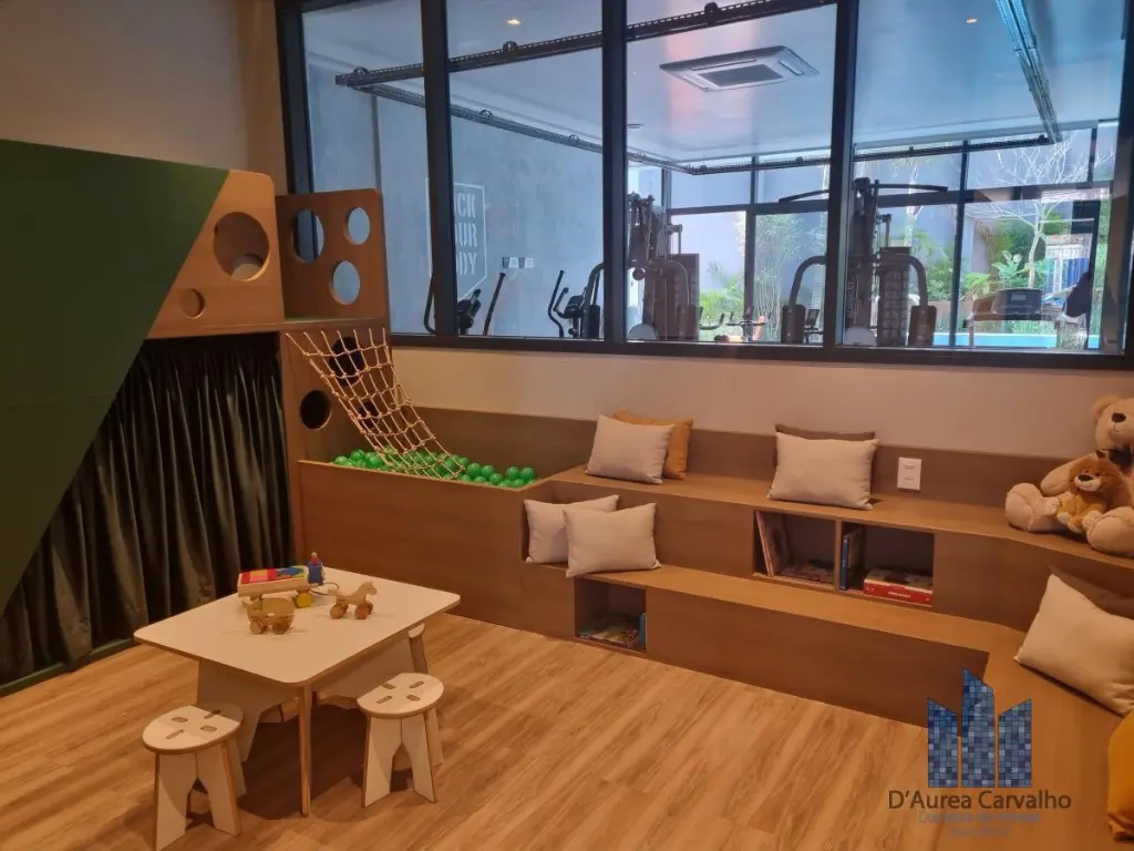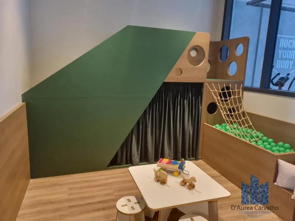 Lazer: lounge e salão de festa rooftop, salão de jogos, fitness center, piscina com solarium, brinquedoteca, coworking, área de convivência e jardim.