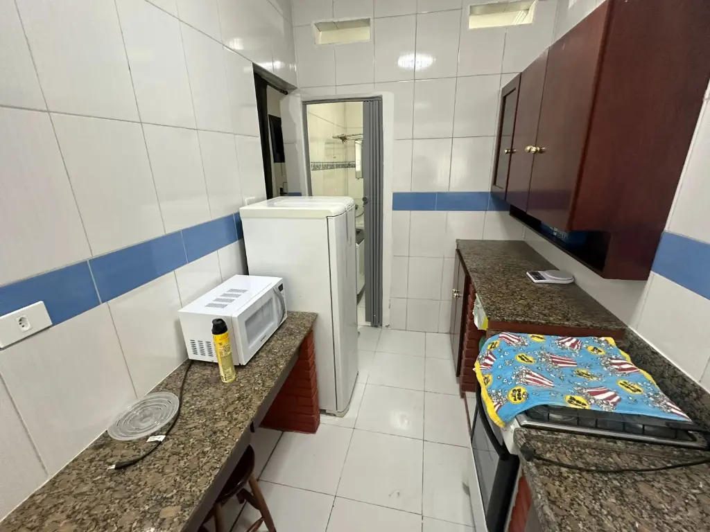O imóvel conta com ambiente integrado, unindo sala, quarto e cozinha em um espaço bem distribuído e fácil de organizar. A cozinha compacta possui bancada funcional e espaço para armários e eletrodomésticos, permitindo preparar refeições de forma prática no dia a dia.