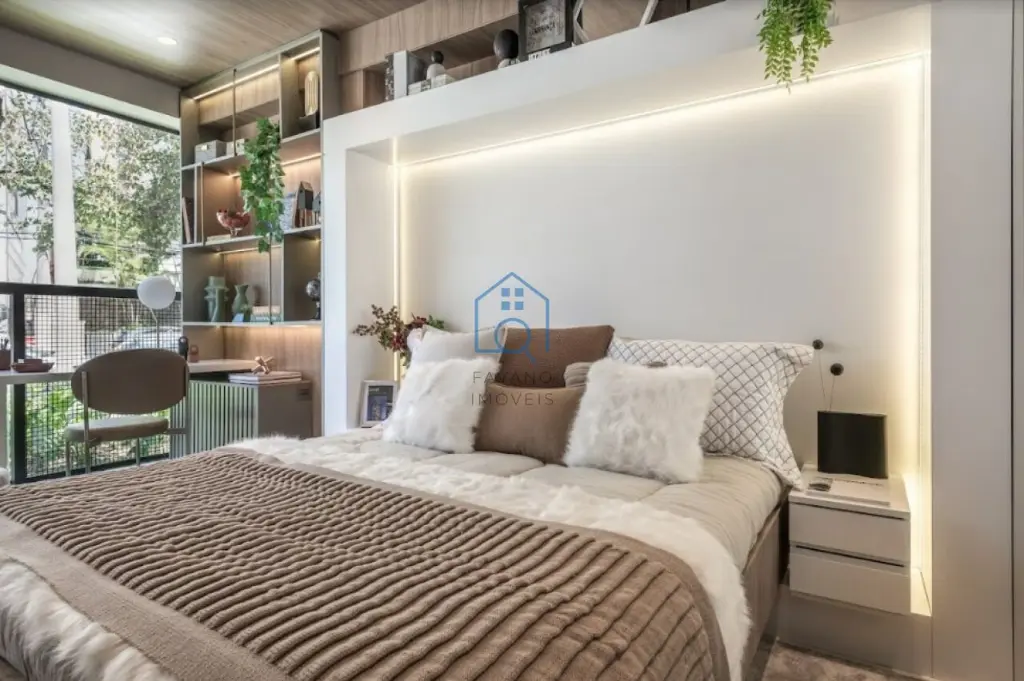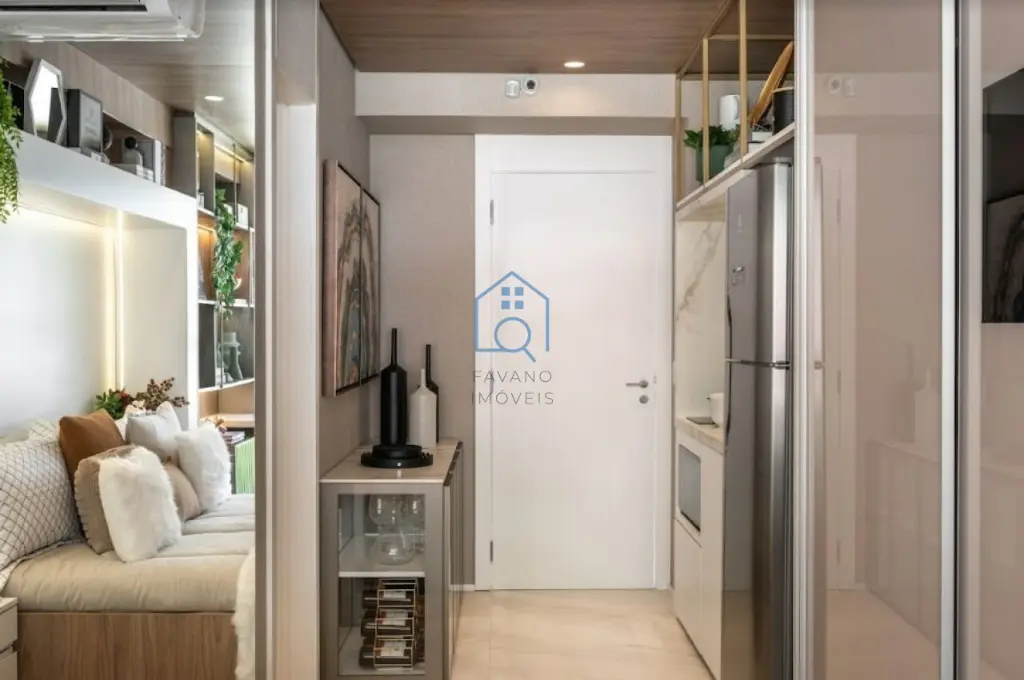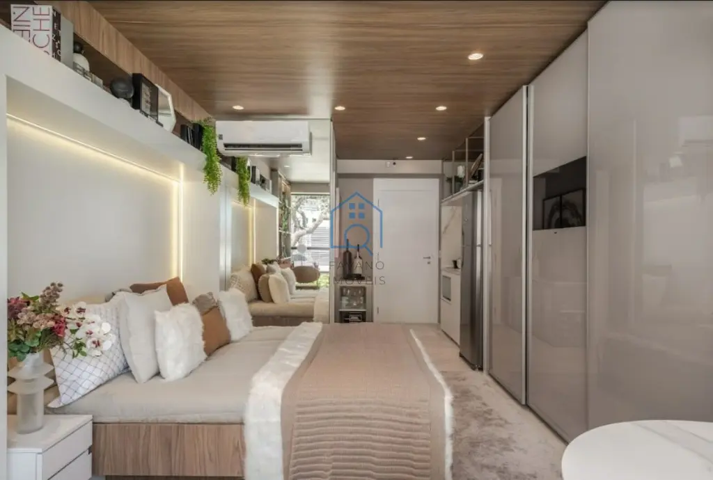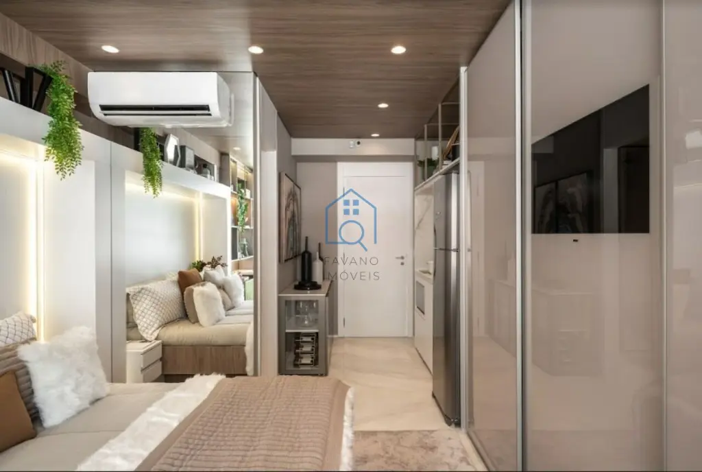 Studio 25m² condomínio possui lazer completo para você desfrutar: Piscina com raia, sala de descanso, sauna, playground, academia, e muito mais.