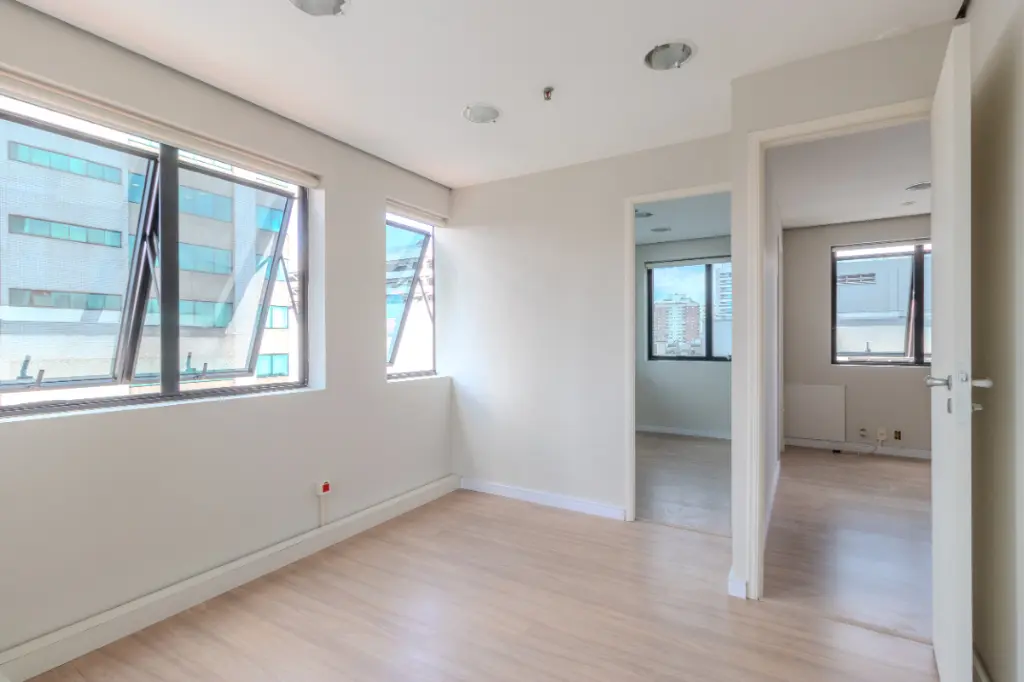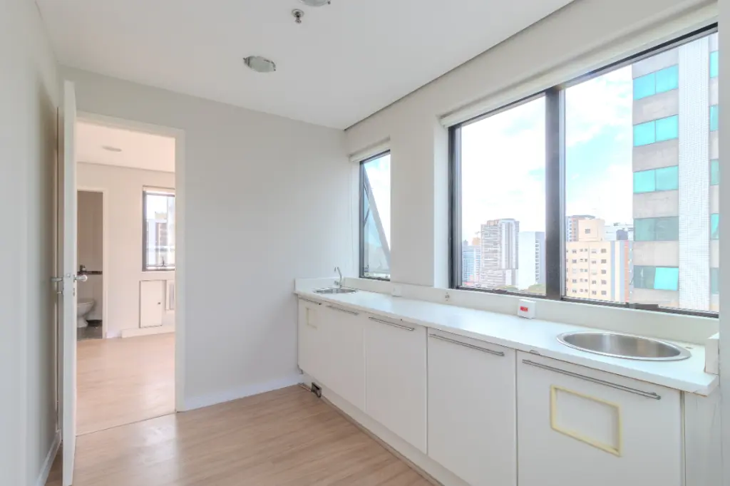 Conjunto comercial à venda no renomado condomínio Kingston Center. Este imóvel possui uma área útil de 51 m² e está localizado no 9º andar, oferecendo uma vista privilegiada da cidade.