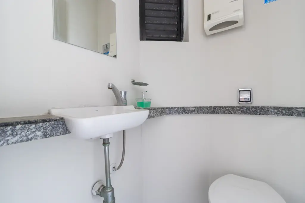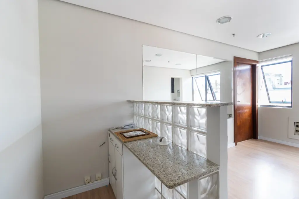 O imóvel possui ampla recepção com balcão e a iluminação de todo o conjunto é bem farta com janelas que possuem vista livre.