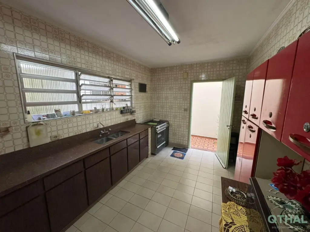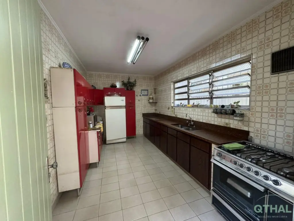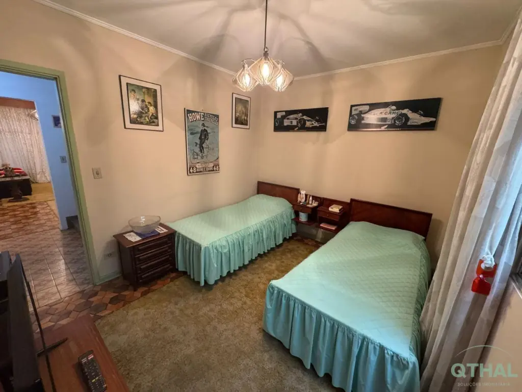 Sobrado de 218m² com seus 3 dormitórios, 2 com armários embutidos, sendo 3 suítes, 1 pequeno closet, 1 com banheira, sala ampla e bem arejada pra jantar e de TV, cozinha com armários embutidos, copa, lavabo, sendo 5 banheiros no total, área de serviço ampla, edícula com 01 quarto e 1 banheiro.