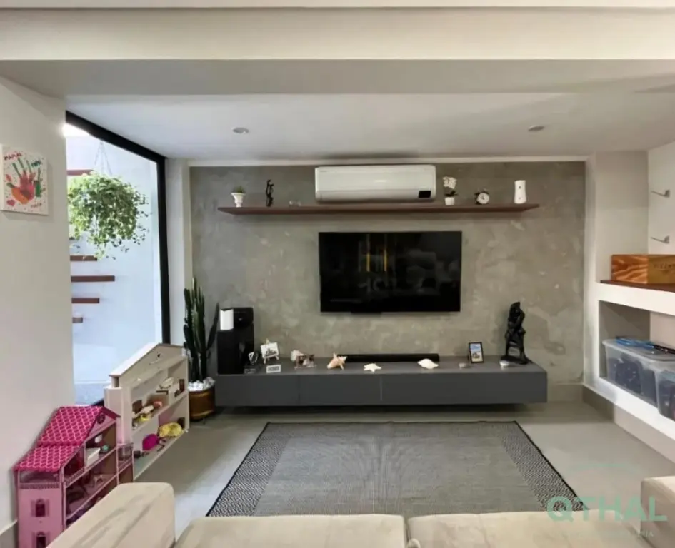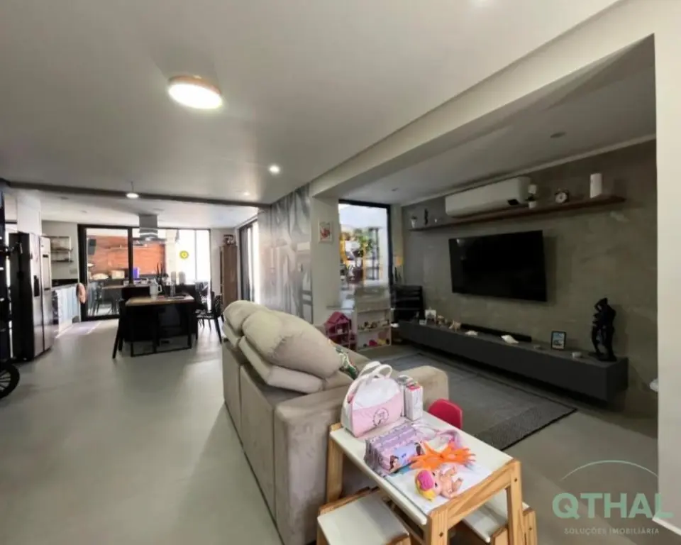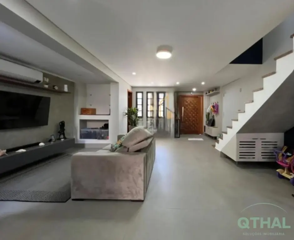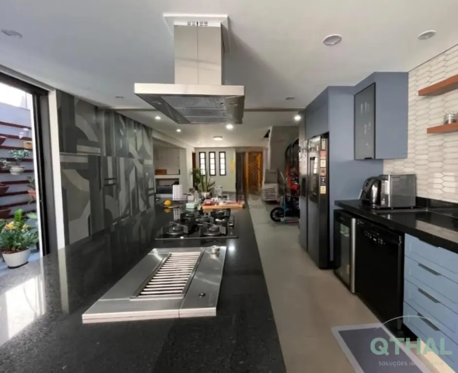 Imóvel conceito aberto, completamente modernizado com acabamento alto padrão. Porcelanatos conceituais linha premium Portinari e Ceusa. Porcelanas e peças de acabamento premium Deca, com aquecimento em todas as torneiras. Casa sustentável com central geradora de energia elétrica solar (painéis fotovoltaicos) e aquecimento de água independente por boiler com dupla pressurização. A capacidade de geração atende completamente ao imóvel e não gera conta de consumo na maior parte dos meses. Rooftop uma beleza a parte, com pergolado e guarda-corpo em alumínio linha suprema. Piso superior em madeira Ipê. Instalação de ar-condicionado em todos os quartos e sala. Box dos banheiros até o teto e ventilação natural. Estrutura e instalação de lareira a gás na sala, o Churrasqueira a carvão na área gourmet externa com coifa e churrasqueira interna à gás na ilha da cozinha, também mantida coifa linha Pro na ilha da cozinha. Armários planejados em todos os cômodos com acabamento alto padrão, medidas customizadas para máximo aproveitamento e armazenagem, sistema de amortecimento em todas gavetas e portas (instalados há menos de 3 meses, dentro da garantia). Todas as persianas automatizadas por controle remoto. Sistema de monitoração e alarme instalado em toda casa.